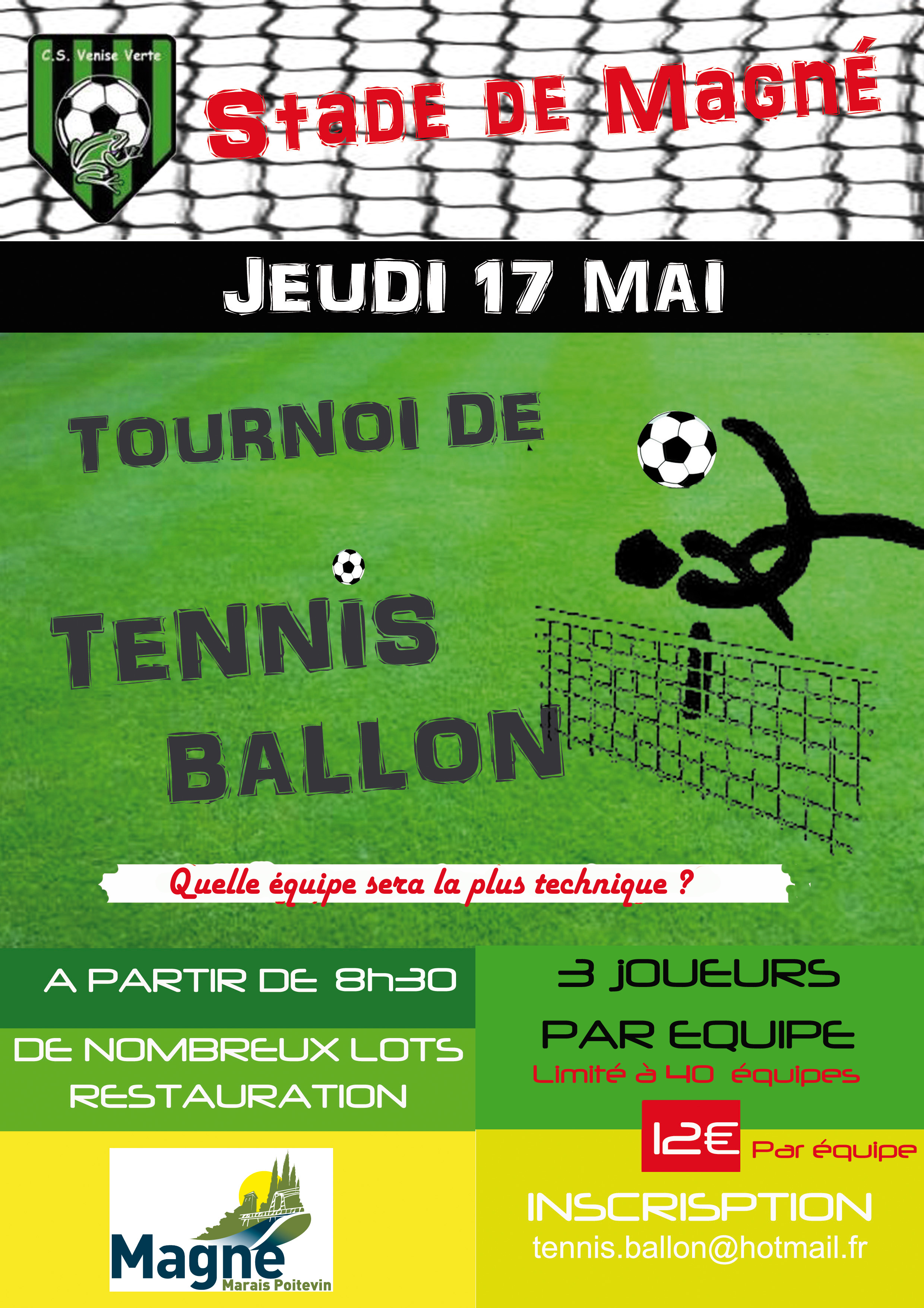 N’amenez pas vos raquettes de tennis mais plutôt vos chaussures à crampons ! Le CSVV organise son tournoi de tennis-ballon le Jeudi 17 Mai en partenariat avec la Mairie de Magné et la Société Générale.