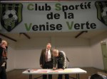 Hier se déroulait la galette des rois du club au foyer municipal de St Georges de Rex. Elle a réuni une centaine de personnes, joueurs, parents, éducateurs… et quelques invités de marque en plus de notre illustre président et des membres du bureau. En effet, cette galette a été l’occasion de ratifier officiellement la charte « Moi je suis sport » portée par le Comité Départemental Olympique et Sportif: notre club s’y engage pour 2 volets, celui du développement durable et celui de la santé. Cela rejoint la démarche déjà entreprise dans le programme « Respect tous terrains » et reconnait que le foot, c’est aussi apprendre à respecter, respecter son environnement et se respecter soi-même.