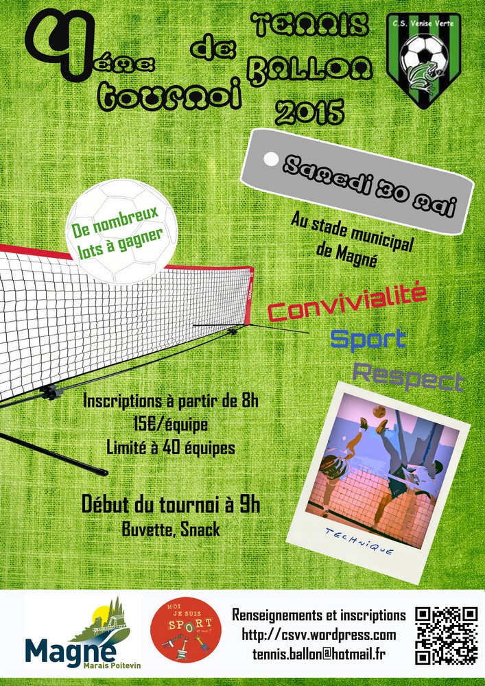 Porté par les joueurs de nos équipes séniors, après 3 éditions, le tournoi de tennis-ballon veut prendre totalement son essor cette année. L’objectif est bien sûr de retrouver l’ambiance conviviale de la journée mais aussi d’augmenter le nombre de participants puisqu’une quarantaine d’équipes de trois, des U15 aux séniors, pourront s’affronter sur le stade de Magné. Avis aux amateurs, pensez à constituer vos équipes et à diffuser largement l’information autour de vous.