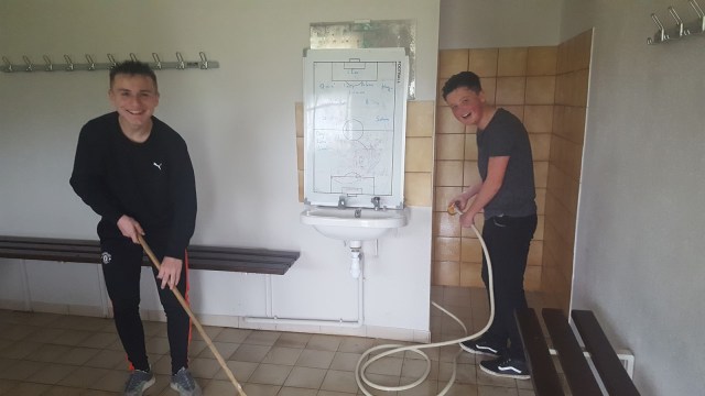 Après les félicitations et le réconfort à la buvette, les enfants ont tout de même nettoyé leur vestiaire (photo 2) comme à l’habitude : la victoire ne change pas les principes du club.