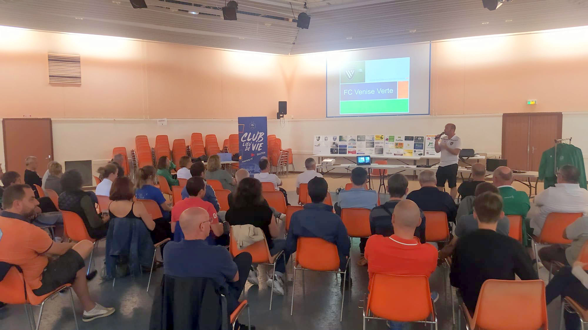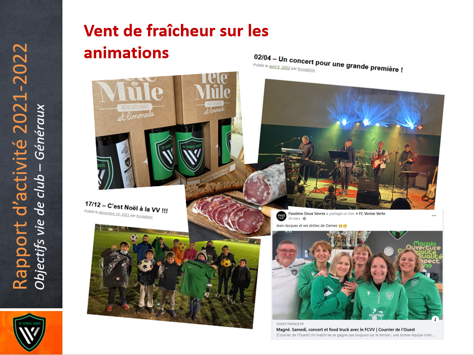 Samedi dernier 25 Juin avait lieu notre « Journée Club » de fin de saison. Il nous avait fallu nous adapter à la météo et la déplacer du stade vers la salle polyvalente de Magné et la météo ne s’est finalement pas trompée… Nous avons donc pu tenir notre Assemblée générale durant la matinée avec les rapports sportifs de Mario, Kevin et Delfine pour nos Séniors, Jeunes et Féminines. Cela a aussi été l’occasion ensuite de revenir sur d’autres points d’une saison encore une fois bien chargée: l’obtention des labels « Jeunes » et « Séniors » niveau Espoir, les avancées du projet « Stades », l’arrivée de nos nouveaux maillots, les animations de l’année…