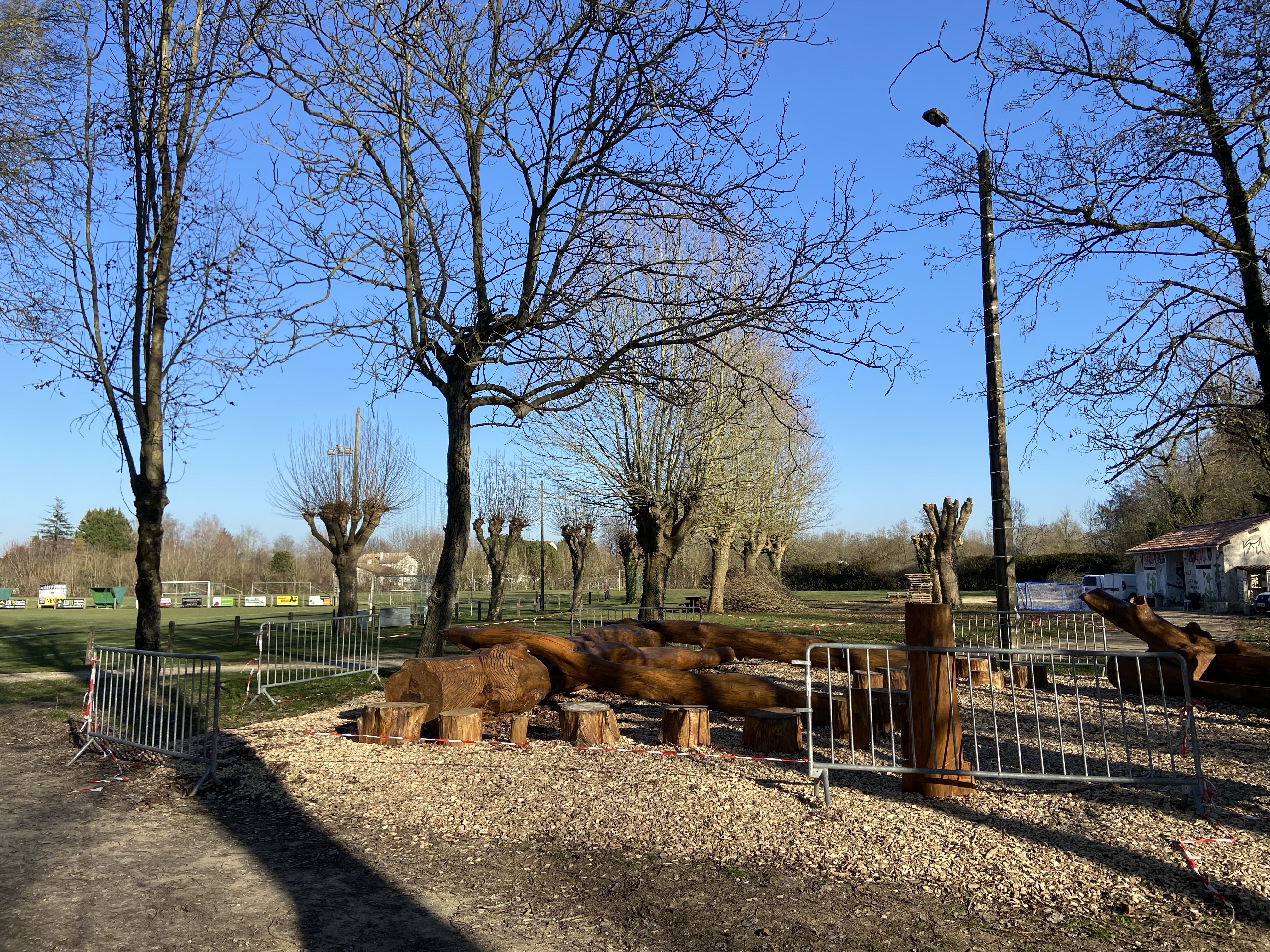 Et oui ça bosse à Magné !!! La municipalité a lancé l’aménagement du site du fond du stade pour créer un bel espace associatif qui va constituer un cadre privilégié pour les manifestations à venir. Tous ceux et celles qui ont participé à notre tournoi Jeunes ou à la Journée Club le savent: il fait bon vivre sous les platanes ! Après l’installation d’une zone de jeu naturelle et d’une boite à livres, une équipe de bénévoles dont notre JJ national se relaient pour rénover les anciens vestiaires. Objectif y installer deux grands espaces pour servir de base arrière de restauration avec éviers, frigos… Tout ce qu’il faut pour simplifier l’organisation de futurs évènements !